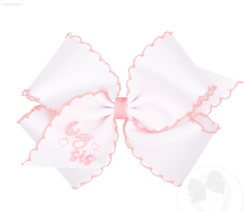 King "Big Sis" Embroidered Grosgrain Hair Bow with Light Pink Moonstitch Edge