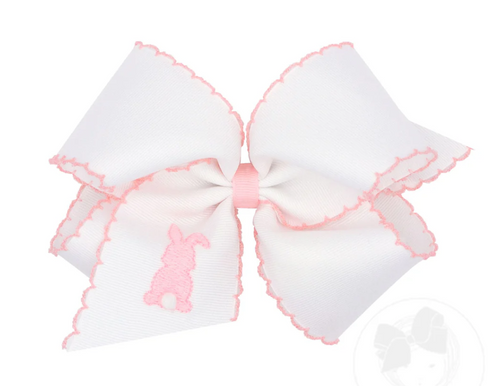 King Grosgrain Bows with Moonstitch Edge and Puff Tail Bunny Embroidery