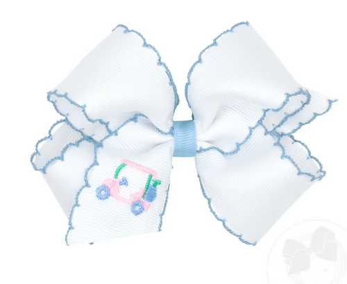 Medium Grosgrain Hair Bow with Moonstitch Edge and Country Club Golf Cart Embroidery
