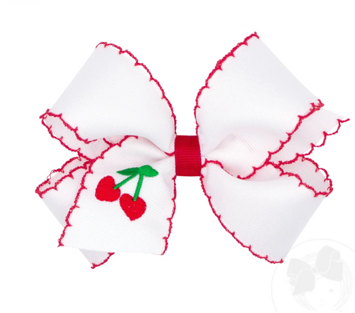 Medium Grosgrain Hair Bow with Moonstitch Edge and Cherries Embroidery