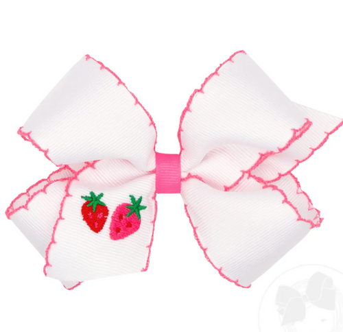 Medium Grosgrain Hair Bow with Moonstitch Edge and Strawberry Embroidery