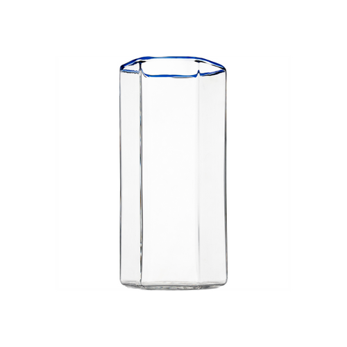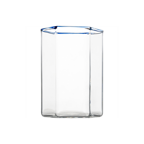 Hampton Hexagon Highball, Clear with Blue Rim, Set of 4