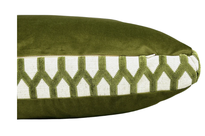 Enhance the look of any room with this sophisticated and stylish pillow. The beautiful solid chambray velvet with celery velvet trim around the edges makes for a perfect accent on any sofa or chair.