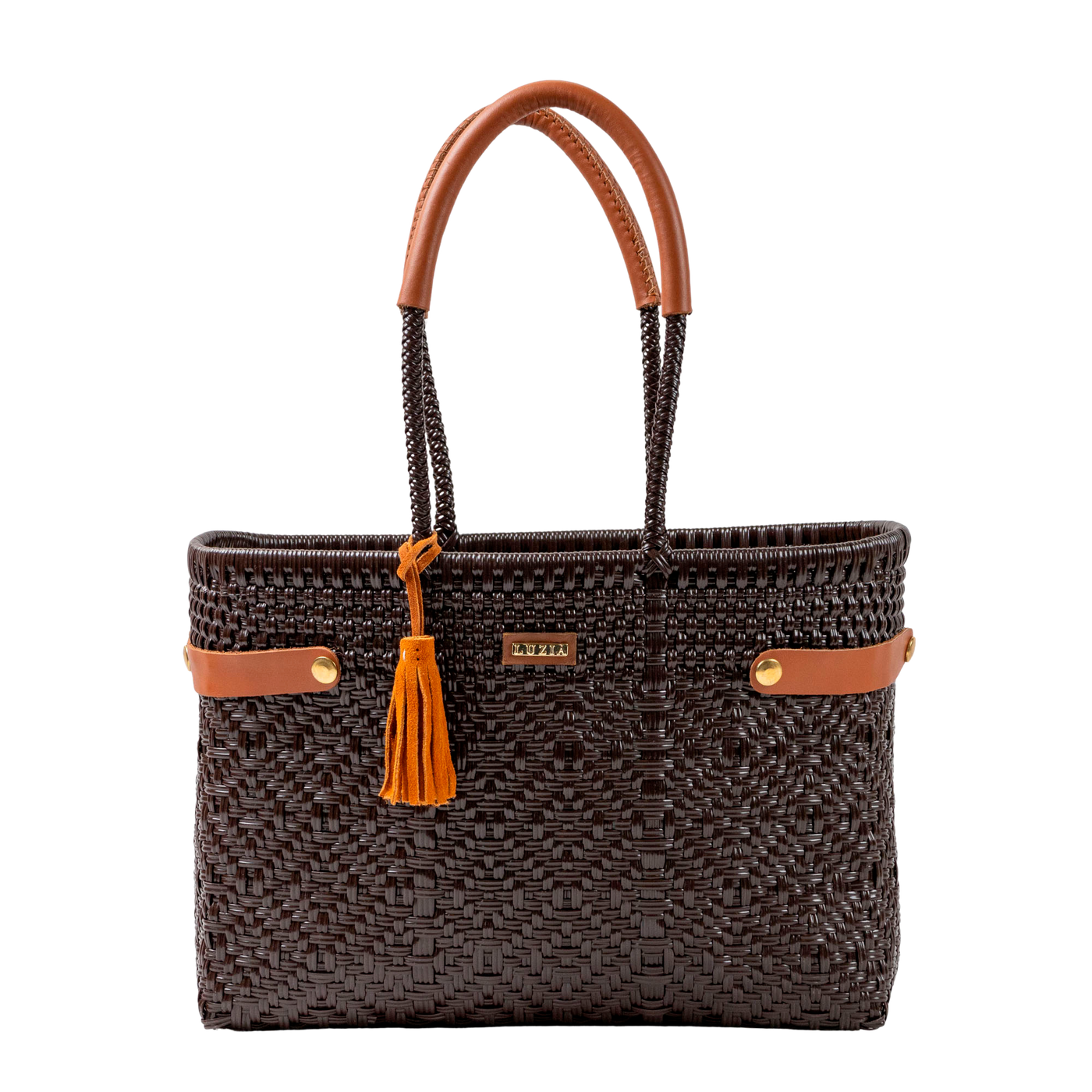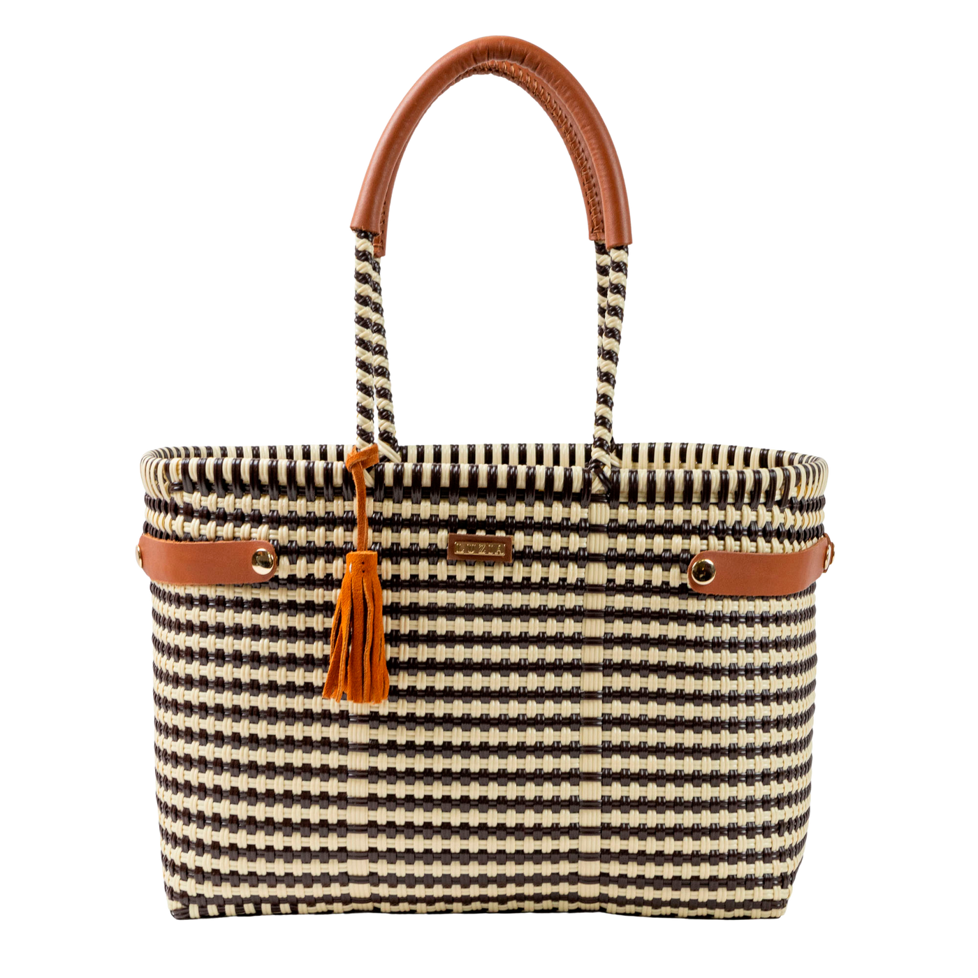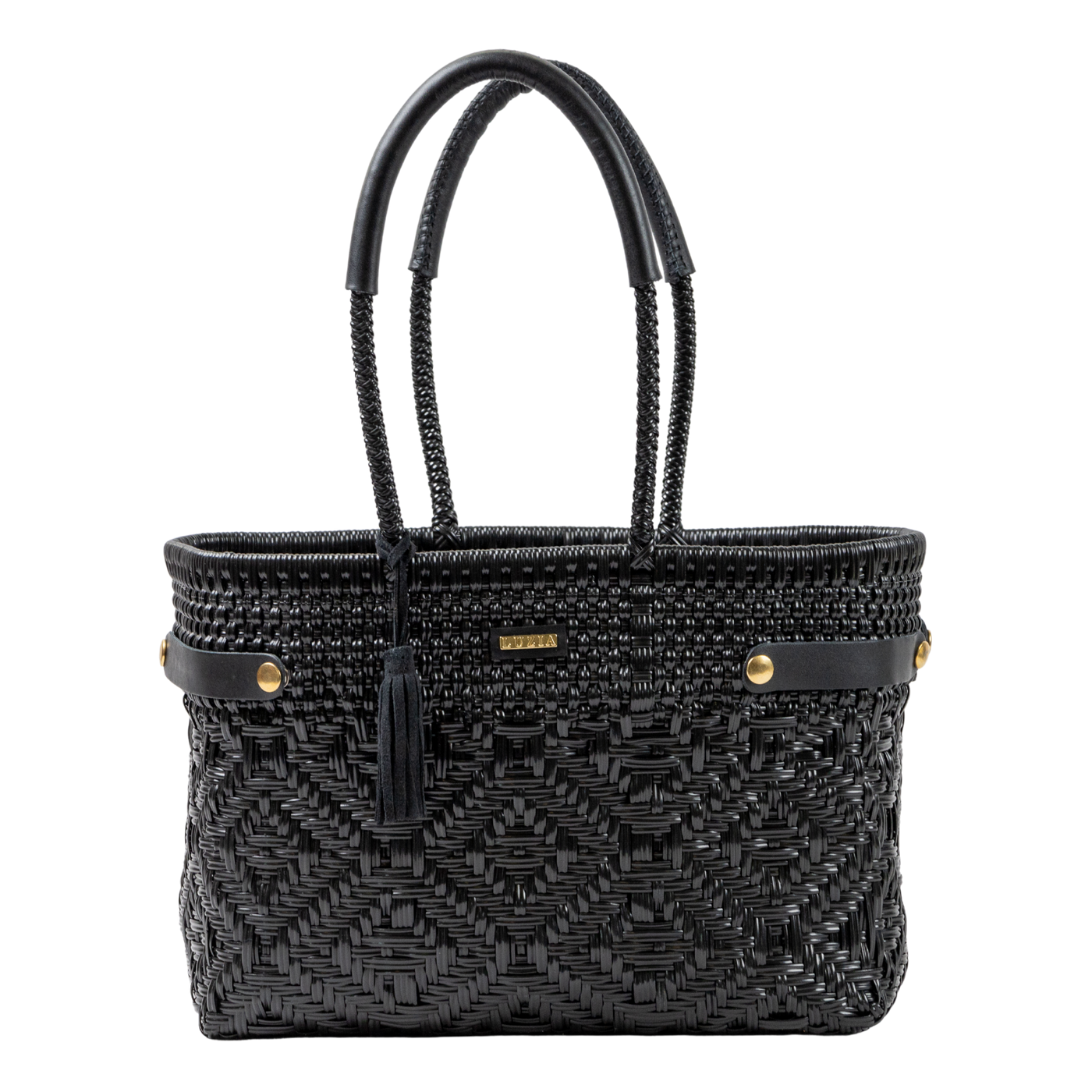 This medium woven tote is meticulously handwoven from premium recycled plastic , featuring a sleek black braided design that complements any look. ensuring a comfortable grip for shopping, beach days, or everyday errands . Designed for those who need both style and space , this jumbo basket bag effortlessly blends practicality with modern sophistication.